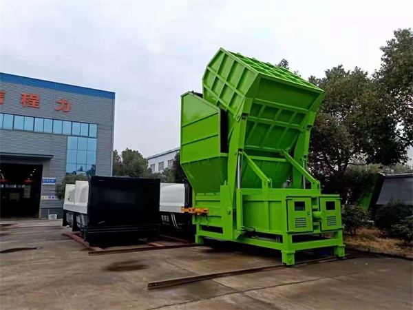 分體式垃圾站上料方式可設(shè)計為:前翻斗翻轉(zhuǎn)上料、側(cè)翻斗翻轉(zhuǎn)上料、后翻斗翻轉(zhuǎn)上料、平臺上料等幾種式;配套轉(zhuǎn)運車輛為車廂可卸式垃圾車,具有壓縮力大、處理效率高、機構(gòu)運行可靠、可自動循環(huán)操作和智能監(jiān)控、使用壽命長等特點。
